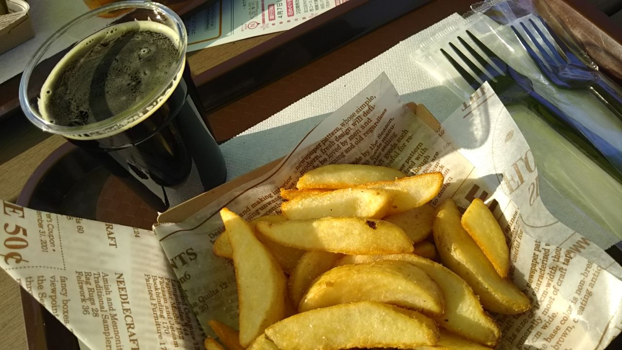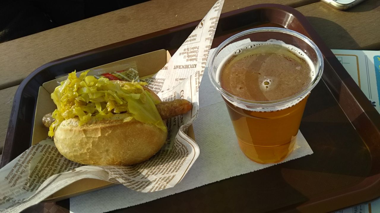 クラフトビールと軽食でせめてもの休日気分を。