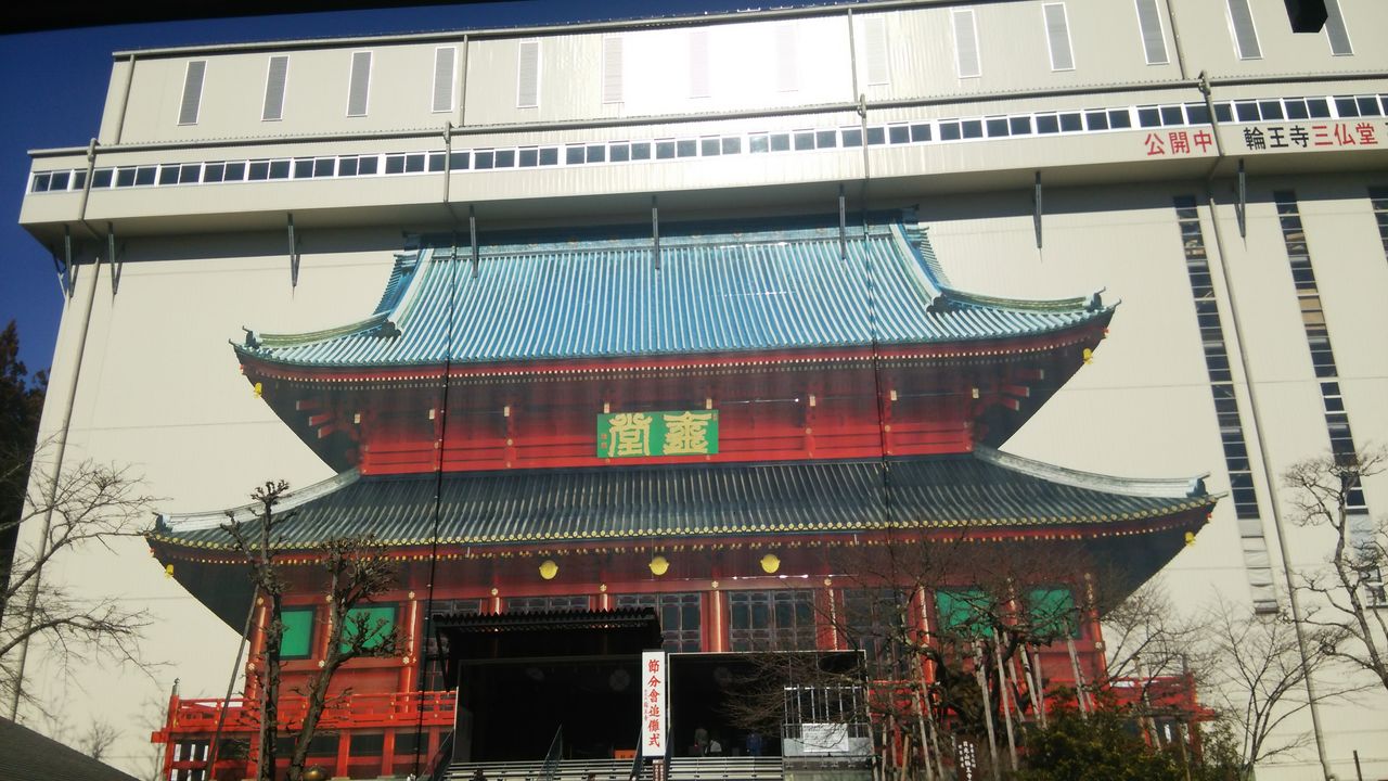 この三仏堂は現在修復中なので、外から見るとこんな感じで覆われちゃってるんですが